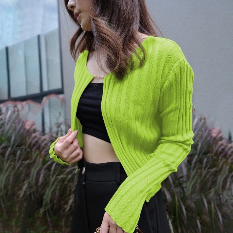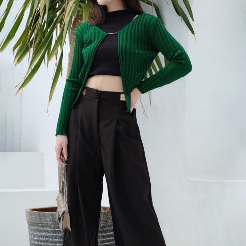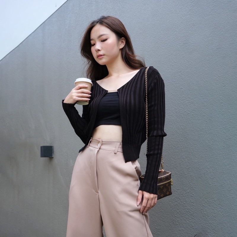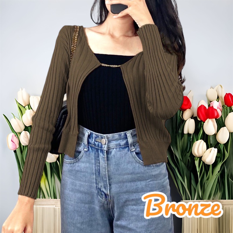 Eloise Ribbed Cardigan with Chain Ready siap kirim