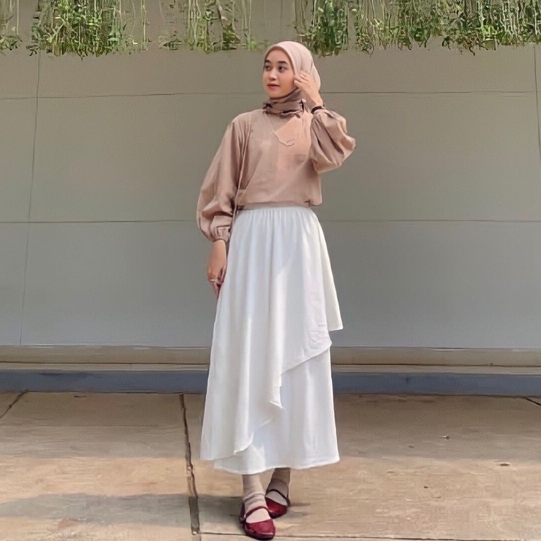 Pakaian Wanita > Rok > Maxi Skirt > Elsie Layer Skirt Rok Crinkle Wanita - Midi Maxi Skirt - Rok Crinkle Casual Korean Look - Korean Style Rok Wanita - Rok Casual Flowy - Rok Payung Wanita