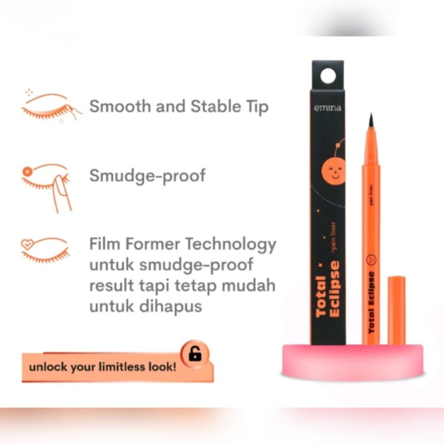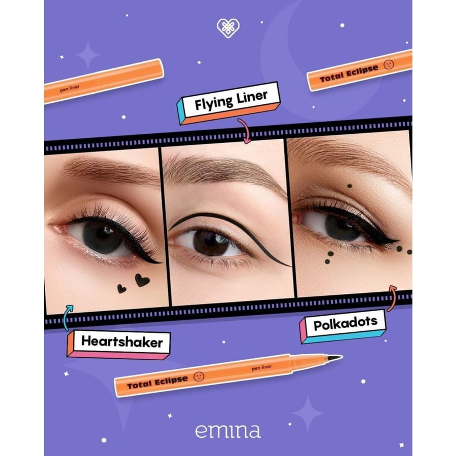 Emina Total Eclipse Pen Liner, Bikin Eyeliner Nggak Pernah Segampang Ini Bikin eyeliner nggak pernah segampang ini. Yuk, kenalan sama Emina Total Eclipse Pen Liner yang aplikasinya super easy