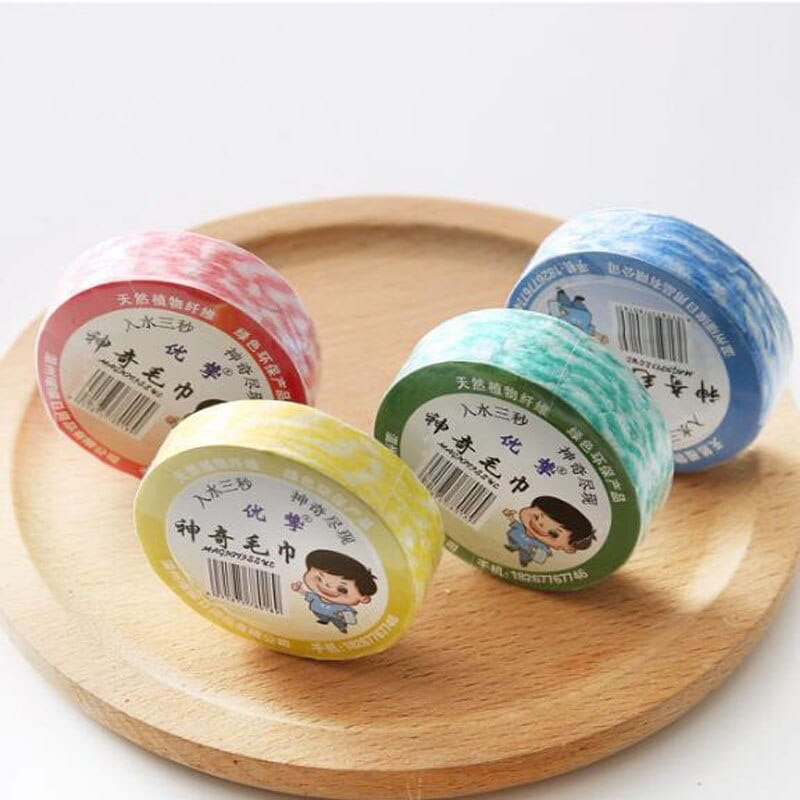 READY STOK Magic towel atau compressed towel yg banyak disebut adalah sebuah handuk kecil yg dikompres hingga kecil, namun dapat dibuka kembali menjadi ukuran orisinilnya.