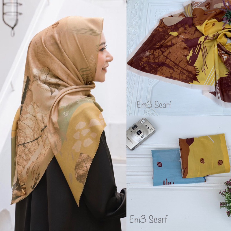 Detail Em3 Scarf,HIJAB SEGIEMPAT LASERCUT MOTIF VOAL Daun kering series