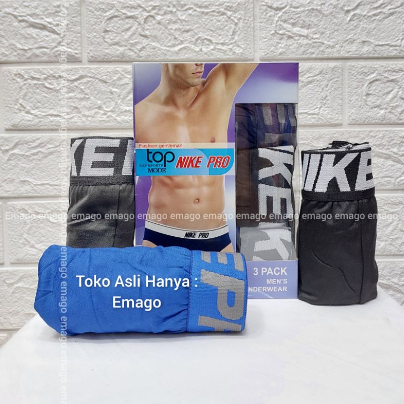Emago - 3Pcs celana dalam Nikee pro celana dalam pria / Pakaian Dalam Pria Dewasa / Sempak Cowo / CD / Celana Dalam Mirah / Underwear Boxer Pria 1Box Isi 3 Pcs