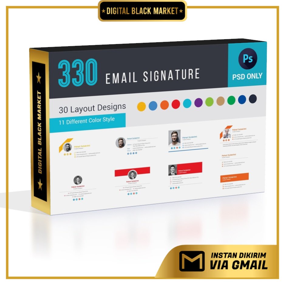 330 Email Signature 330 PSD File Included 30 Design Layout 11 Color Option Resolution: 72dpi Color mode: RGB Photoshop CS3, CS4, CS5, CS6, CC + Higher Version Print Ready Easy to Edit Help Guide Included Fonts: (Link Included in Help Guide) Preview Images not included in main file