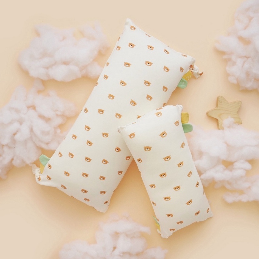 Bantal bayi dengan tiga jenis aksesoris yang berfungsi sebagai comforter juga melatih motorik dan sensori bayi untuk menggengam dan meraba.