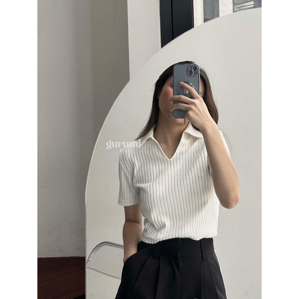 Video perkenalan produk Emily Top | atasan knit polo. Sumber: Shopee.