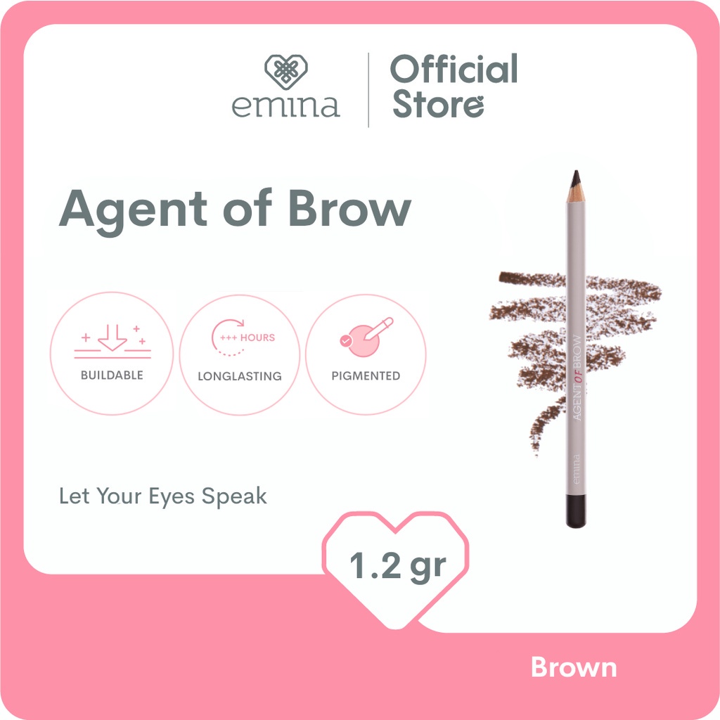 About Agent of Brow:Pensil alis dengan hasil yang natural, cocok untuk pemula.What You’ll Love: Tahan lama Pigmented Easy to use Tekstur creamy dan lembutHow to Use:1. Tentukan titik awal alis terletak pada ujung mata bagian yang dalam sejajar dengan hidung2. Tentukan titik puncak lengkung alis dengan cara, tempatkan ujung bawah pensil alis tepat di ujunghidung, sejajarkan ujung pensil bagian atas tepat di tengah mata, bagian unjung pensil bagian atasyang bertemu dengan alis itulah titik lengkung alis.3. Tentukan ekor alis dengan cara,tempatkan ujung pensil alis bagian bawah pada tengah bibir atas danmelewati pinggir hidung serta melewati ujung mata terluar, ujung pensil alis bagian atas yang mengenai alis itulah ekor alis4. Membuat bingkai alis dengan menyatukan seluruh titik yang telahditentukan sebelumnya5. Arsir alis dalam bingkai mengikuti arah alisNetto: 1.2 gBPOM Certified:Black - NA11211200730Brown - NA11211200731Ingredients:Stearic Acid, Beeswax, C10-18 Triglycerides, Shea Butter, Isopropyl Myristate, Hydrogenated Vegetable Oil, Theobroma Cacao Seed Butter. May Contain: CI 77491, CI 77499, CI 77891, CI 77266.Tips & Trick:*Pensil ini buildable sehingga mudah dikontrol ketebalannya sesuai dengan hasil yang diinginkan. Untuk hasil natural, cukup arsir secara tipis mengikuti arah alis, untuk hasil yang lebih tebal, ulangi lagi arsirhingga sesuai dengan ketebalan yang diinginkan.**Jika pensil sudah tumpul, pensil alis dapat diraut dengan penyerut pensil biasa. Raut pensil hingga tidak terlalu tajam, agar tetap nyaman digunakan.IMPORTANT NOTES️Segera hentikan pemakaian apabila terdapat indikasi alergi.Harap sertakan bukti rekam video unboxing paket tanpa pause untuk pengajuan kerusakan produk.