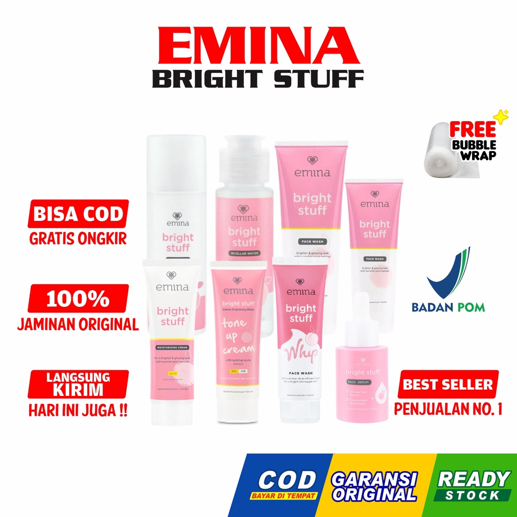 Detail Emina Bright Stuff Series | Moisturizing Cream | Face Wash | Serum | Glossy Stain | Sunscreen