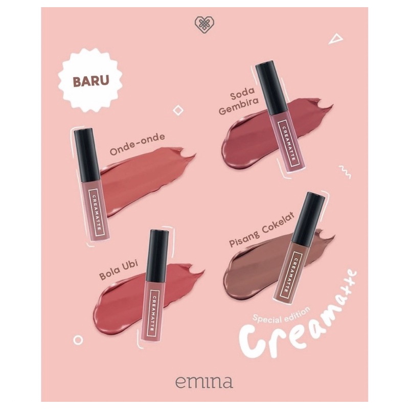 Description: Best mate for your lip, Emina Creamatte is an irresistible liquid lip cream with color binding pigment to gives intense and buildable matte finish. Enriched with Vitamin E to keep your lips moist, its soft and velvety texture make it so easy to apply and fun to bring anywhere. Available in 15 pretty shades for every mood!