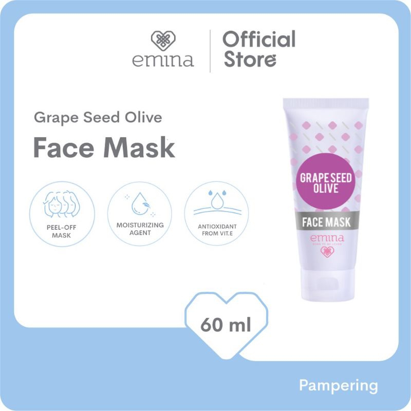 Emina Grape Seed Olive Face Mask (Peel Off Mask) Masker wajah peel off yang melembapkan, melindungi sel kulit serta mengencangkan sehingga wajah tampak lebih sehat.