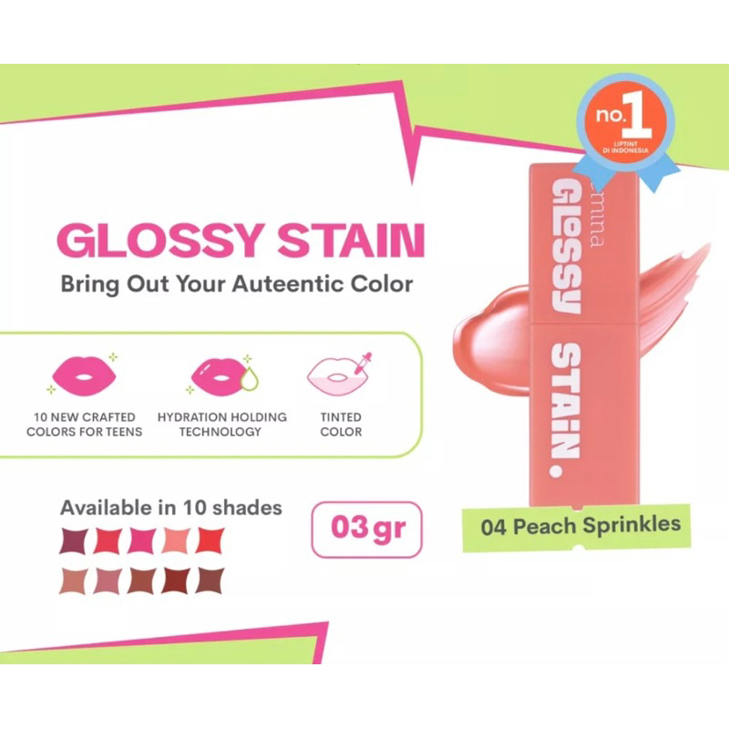 Emina Glossy Stain adalah lip tint dengan gloss finish yang nyaman digunakan sehari-hari karena tekstur gel nya yang ringan dan tidak terasa berminyak. Dilengkapi dengan Apricot & Avocado Oil sebagai Moisturizing active yang memberikan kelembaban pada bibir dibandingkan lip tint dengan finish matte. Tersedia dalam 5 varian warna yang wearable untuk memberikan tampilan warna kilau bibir yang natural.