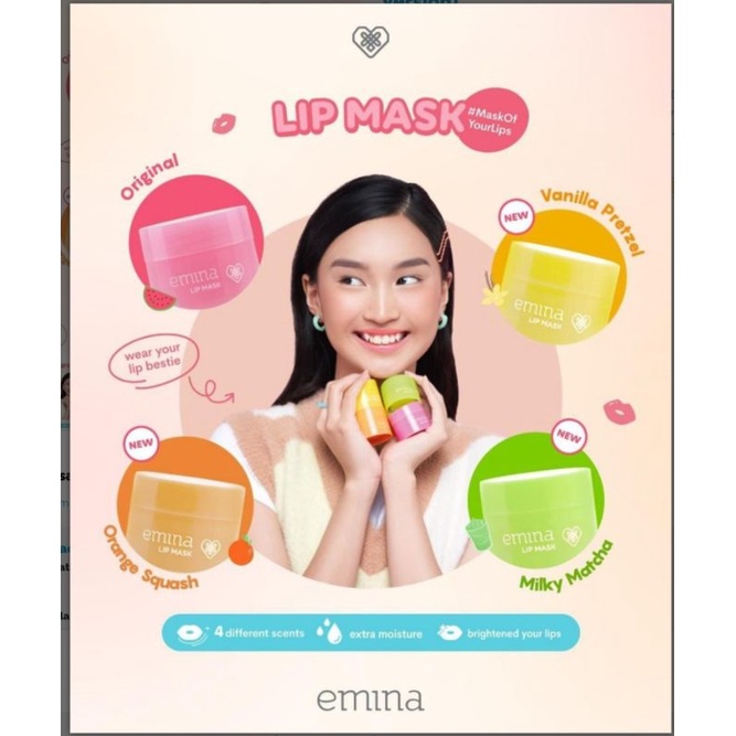 Emina Lip Mask 9 gr Blister version adalah kemasan baru dari Lip Mask Emina, pelembab bibir yang dapat mengurangi tampilan bibir kering dan pecah-pecah. Dapat memberikan kelembaban ektra pada bibir di pagi hari sebagai Lip Care, dan di malam hari sebagai Lip Mask.