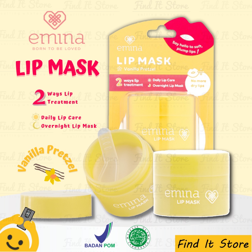 Emina Lip Mask Original NA18191305483 Emina Lip Mask Vanila Pretzel NA 18211301114 Emina Lip Mask Milky Matcha NA 18211301110 Emina Lip Mask Orange Squash NA 182111301109 Mengandung shea butter dan 7 natural oil yang memberikan kelembaban ekstra pada bibir. Sel kulit mati lebih mudah terangkat sehingga bibir terasa lebih kenyal dan lembut.
