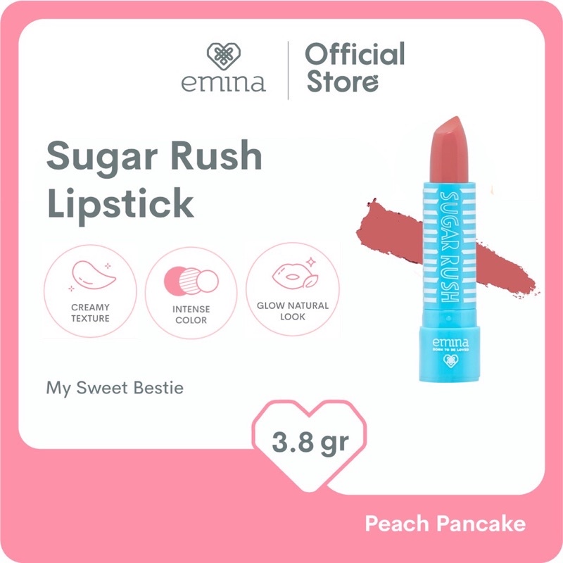Emina Sugar Rush Lipstick merupakan lipstik yang memiliki tekstur creamy yang lembab untuk memenuhi kebutuhan hidrasi bibir. Mengandung vitamin E, Olive Oil, Jojoba Oil dan Shea Butter untuk menghasilkan bibir sehat dan berkilau. Tersedia dalam beberapa pilihan warna yang cantik dan cocok untuk digunakan sehari-hari...- Warna intens dalam sekali pulas- Mengandung vitamin E sebagai antioksidan- Paduan olive oil, jojoba oil, dan shea butter untuk menjaga bibir tetap lembap dan sehatHow to Use :1. AplikasikanEmina Sugar Rush Lipstick pada bibir hingga merata.2. Tambahkanintensitas warna sesuai dengan yang kamu inginkanIngredients :Hydrogenated Polyisobutene, Phenyl Trimethicone, Polyethylene, Ethylhexyl Palmitate, Ceresin, Isopropyl Myristate, Lanolin Anhydrous, Simmondsia Chinensi s (Jojoba) Seed Oil, Squalane, Diisostearly Malate, Ethylhexyl Methoxycinnamate, Isononyl Isononanoate, Shea Butter (Butyrospermum Parkii), Tocopheryl Acetate, Phenoxyethanol, Ethylhexylglycerin, Allantoin, BHT, Fragrance, Olive (Olea Europaea), Oil, Tocopherol.