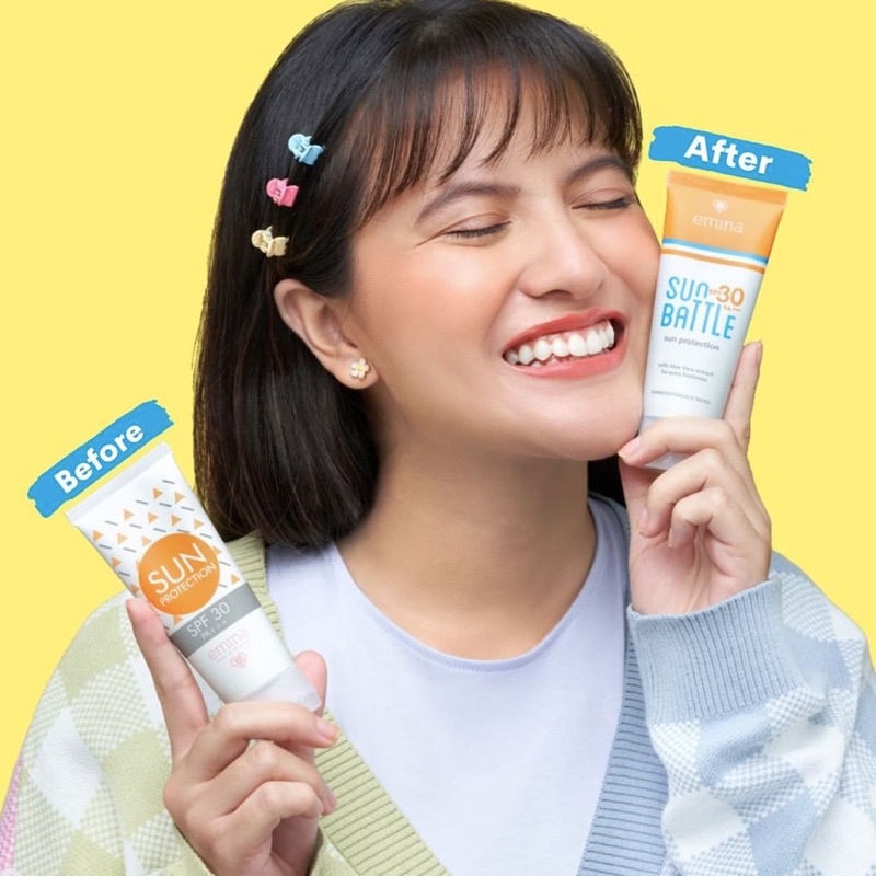 Video perkenalan produk EMINA Sun Battle SPF 30 PA+++ 23 ml | 60 ml BPOM - Sunscreen Tabir Surya. Sumber: Shopee.