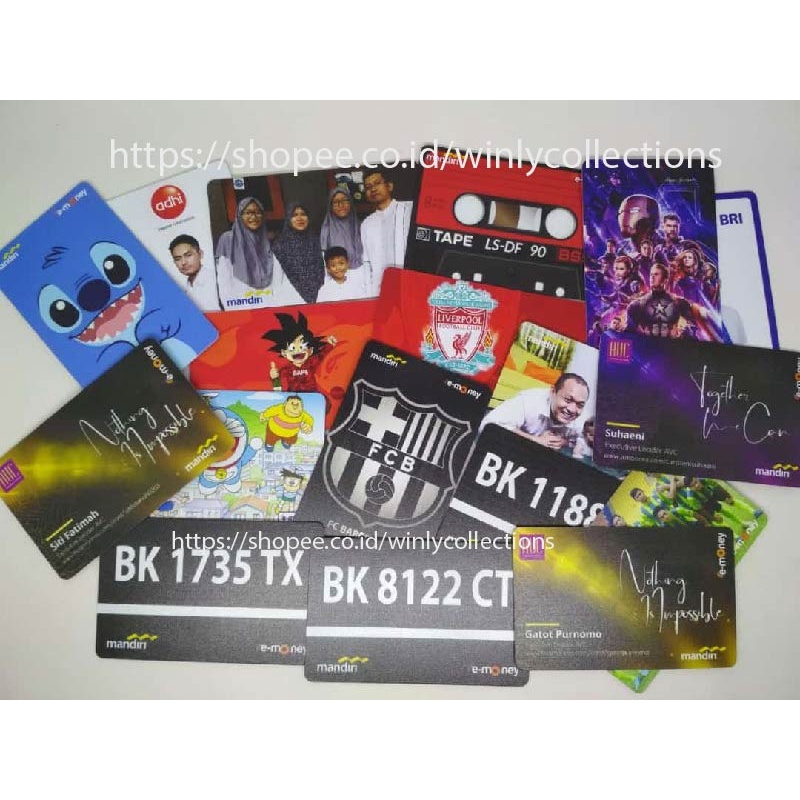 # Kartu Resmi dari Bank Cetak Custom # Print UV ( bukan stiker ) - Mesin dari Jepang Kualitas Terbaik # Terima Design Custom ( Link Order di bawah ya ) : ID CARD / Foto / Gambar dari Google / Klub Bola / Anime / Koleksi dari kita # Jaminan Garansi 100% TUKAR BARU apabila Kartu tidak bisa Topup atau Salah Cetak # Dibuatkan Previewnya dulu sebelum Cetak # Proses CEPAT # Bisa dipakai di Pintu Tol di GTO, MRT, Bayar Parkir, Belanja, Busway, KRL # Kartu Resmi dari Bank Cetak Custom