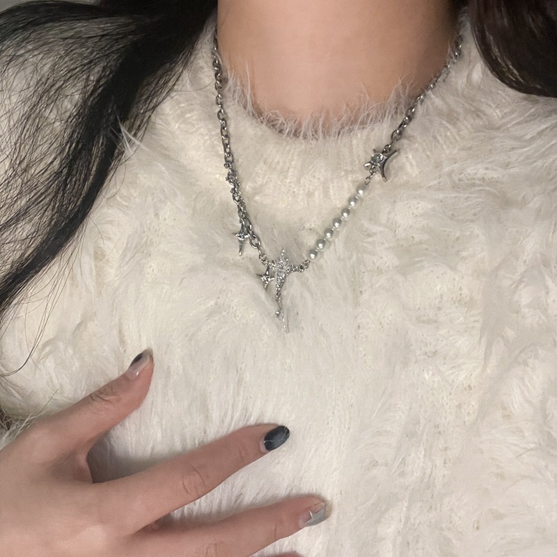 Detail Empat Mount Bintang Mutiara Splicing Kalung Aksesoris Rantai Kasual Kepribadian Fashion