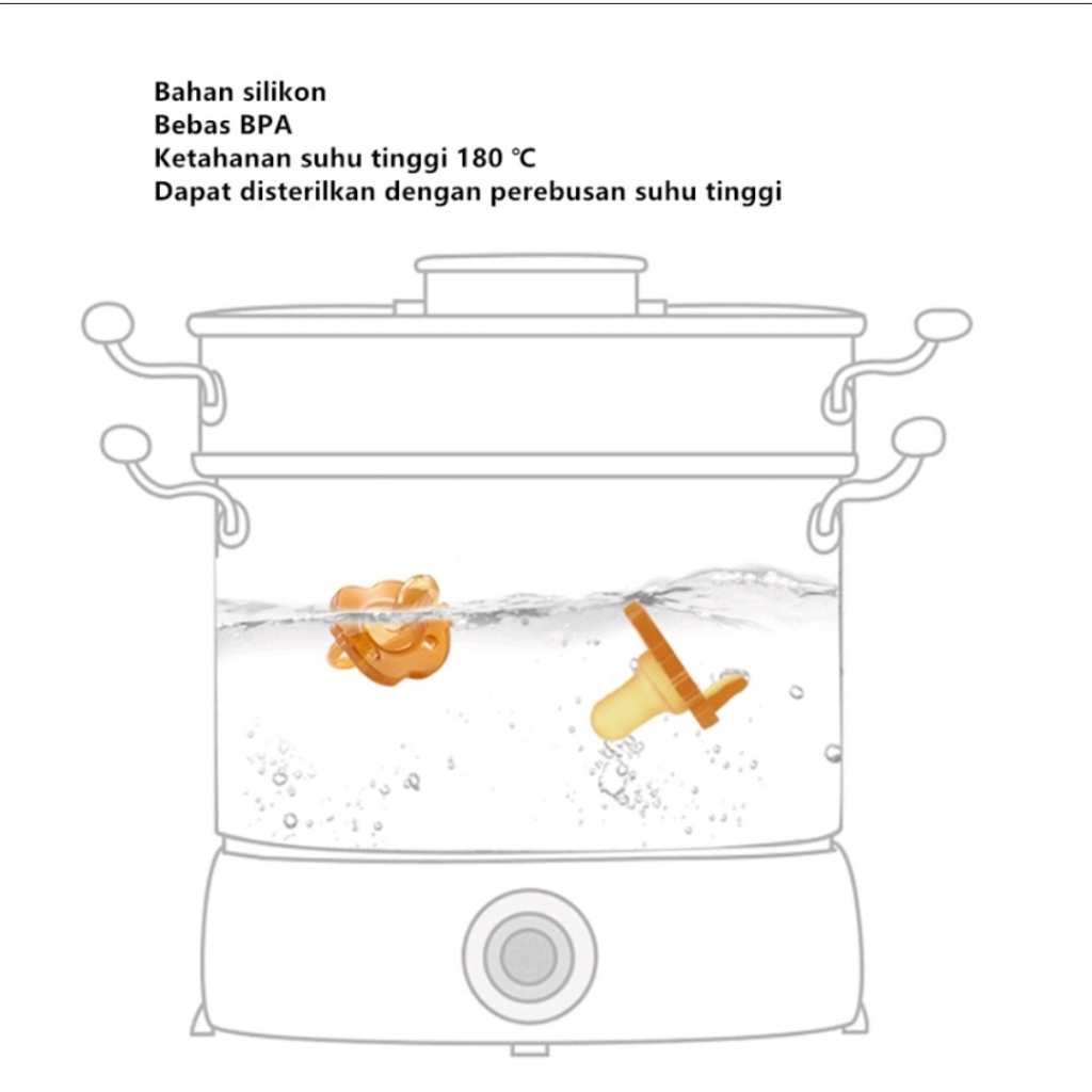 Spesifikasi : - Bahan BPA Free - Bahan silikon aman BPA free - Digunakan untuk bayi 0 - 3th - Memiliki box kotak sehingga aman dari debu dan bakteri - Mudah dibawa berpergian dan higienis. - Membantu penempatan lidah yang sempurna dan mengurangi tekanan pada rahang bayi. - Membantu perkembangan tumbuh gigi bayi dan menghindari terjadinya resiko crossbites. - Terdapat Ultra Thin Stem (leher yang tipis) yang secara nyata terbukti mengurangi tekanan pada mulut dan gigi bayi.