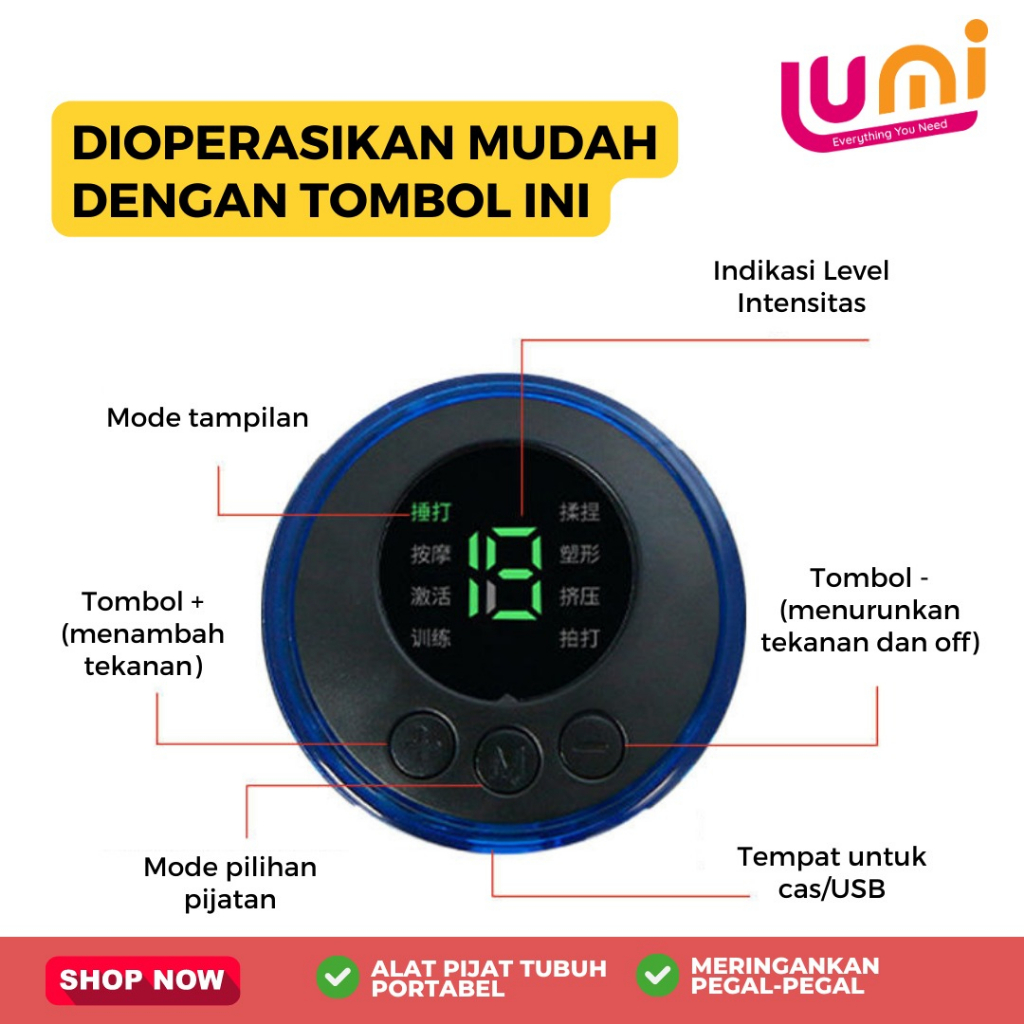 Pilihan dengan 8 mode. 1, Pilih 8 mode dengan operasi sederhana 2, Ini akan mematikan daya secara otomatis setelah 12 menit dari berhenti, ketika Anda lupa matikan. 3, Intensitas stimulasi dibagi menjadi 19 level (intensitas1-19)