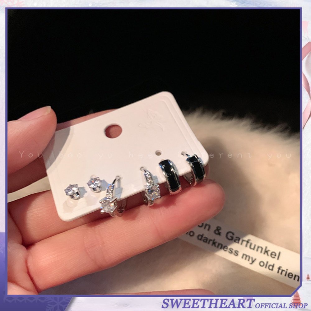 Aksesoris Fashion > Anting > Enam Potong Set Niche Desain Sederhana Rasa Anting-Anting Prancis Gaya Punk High-end Rasa Baru Trendi Anting-Anting Set Anting-Anting Pria Wanita Anting Pasangan Perhiasan Hati Manis