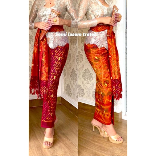 Pakaian Wanita > Pakaian Tradisional > Bawahan > Endek tabur emas + selendang sedang