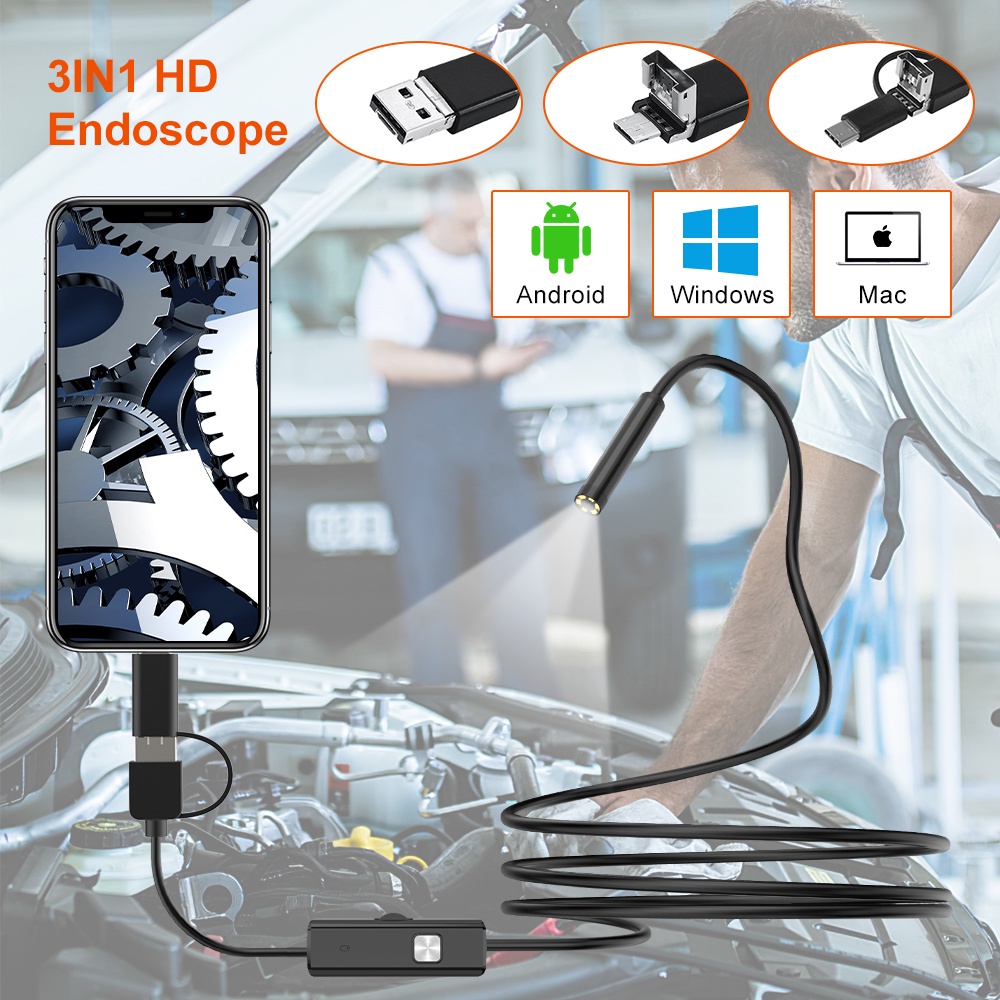 Handphone & Aksesoris > Handphone & Aksesoris Lainnya > Endoskop Endoscope 3in1 TYPE-C/Microusb/USB 8mm Len Inspection Pipe Camera for Cars Endoscope IP67 Waterproof Camera for Phone/PC