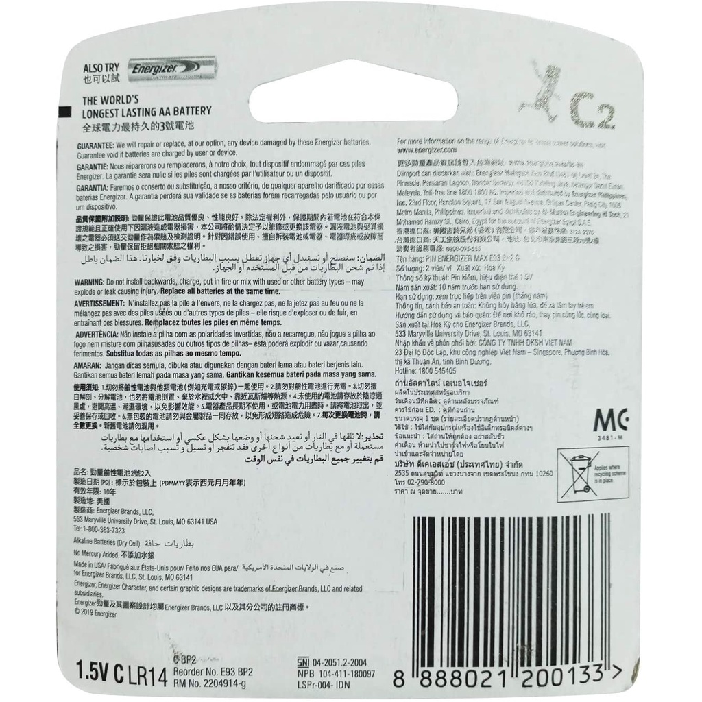 Energizer Max alkaline dry battery makes you confident with efficiency of use and continuously No mercury and cadmium. World quality control. * Ideal for electronic devices that require high energy such as digital camera, tape player, MP3 player, game console, and etc.. * Certified by industrial standard