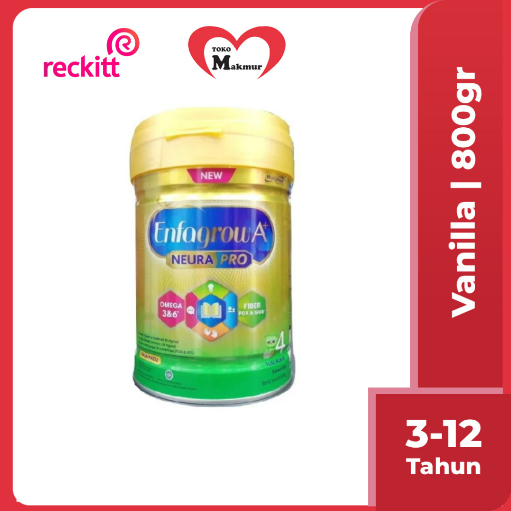 Kandungan Nutrisi Susu Formula / Susu Anak Enfagrow A+4 : - Dha : Diperlukan Untuk Optimalkan Perkembangan Otak Si Kecil Dimasa Awal Kehidupannya. - Kalsium : Berperan Untuk Pembentukan Tulang Dan Gigi Si Kecil. - Protein : Bantu Membangun Dan Memperbaiki Jaringan Tubuh. - Vitamin C : Berfungsi Dalam Pembentukan Dan Pemeliharaan Jaringan Kolagen. - Zat Besi : Merupakan Salah Satu Komponen Haemoglobin Dalam Sel Darah Merah Yang Akan Membawa Oksigen Ke Seluruh Tubuh - Vitamin A : Mejaga Kesehatan Bagian Permukaan Mata, Saluran Pencernaan, Saluran Pernapasan Dan Kulit Si Kecil - Vitamin B6 : Berfungsi Untuk Kordinasi Proses Energi, Sistem Metabolisme Dan Pembentukan Jaringan. - Vitamin B12 : Berperan Sebagai Koenzim Dalam Pembentukan Asam Nukleat Seperti Pembentukan Sel Darah Merah