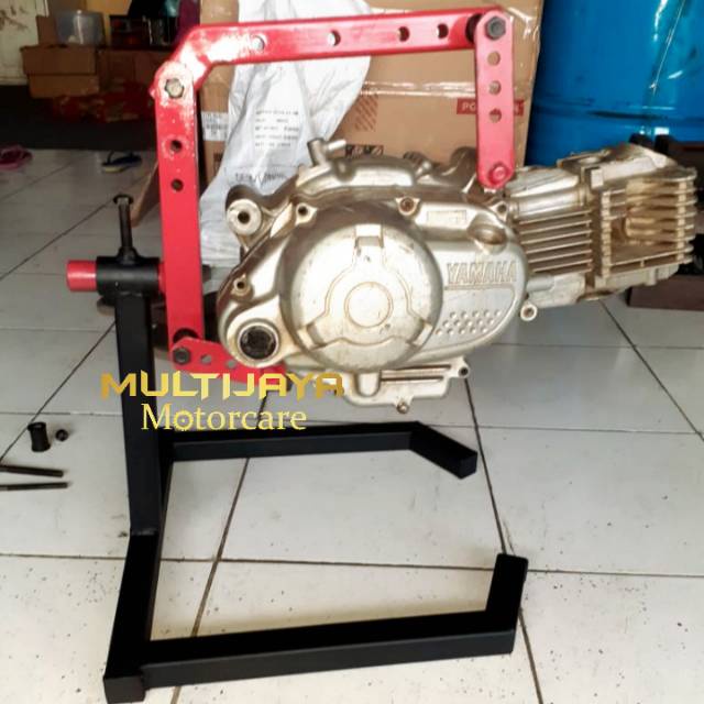 Alat bantu penopang mesin sepeda motor universal. Biasa digunakan untuk membantu anda para teknisi pada saat pembongkaran/perbaikan mesin sepeda motor.