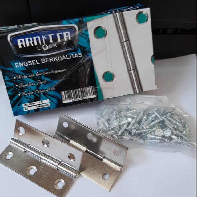 ENGSEL BERKUALITAS TIPIS STAINLESS 2.5" HARGA 1LUSIN / ENGSEL LEMARI JENDELA KANDANG DLL