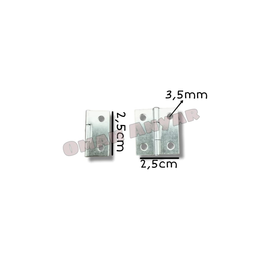 Engsel Kotak Mini Hampers Bahan: Stainless Steel Ukuran: 1" Dapat digunakan untuk kotak hampers yang berbahan kayu Harga tertera adalah harga untuk 1 pasang (2pc) dan belum termasuk dengan skrup