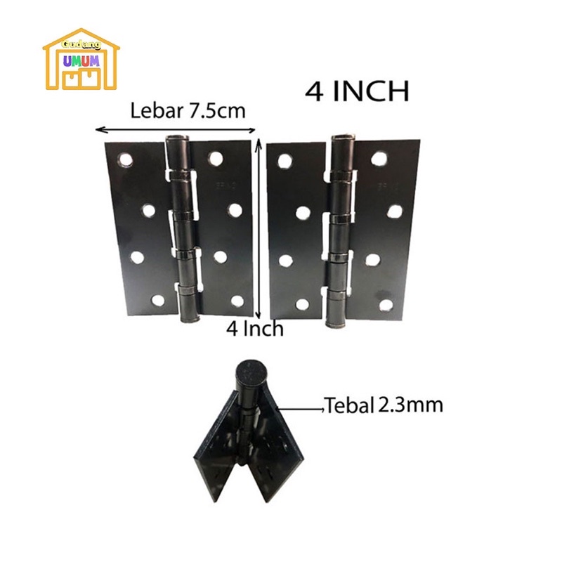 Deskripsi VERINO Engsel Tebal Hitam Varian Ukuran 3" - 4" - 5"