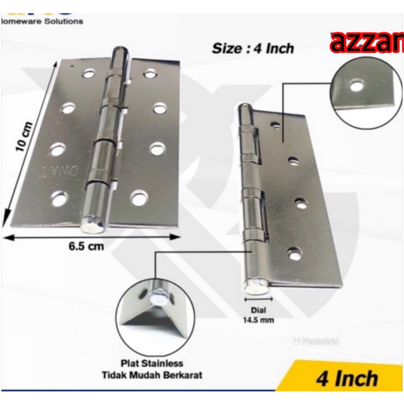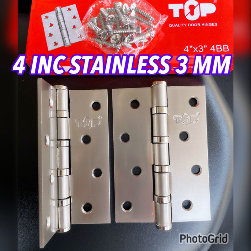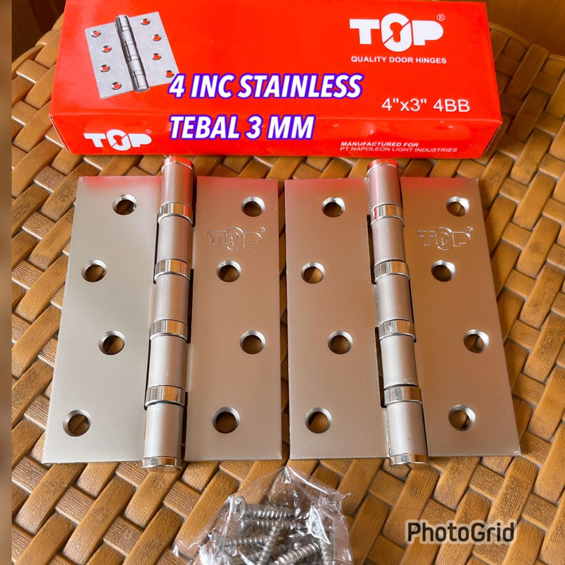 Perlengkapan Rumah > Alat Pengaman > Perangkat Pintu & Gembok > engsel pintu SUS 304 KODAI/ ENGSEL 4 INC KODAI TEBAL 3 MM ENGSEL PINTU KODAI TOP Engsel 4 Inc Stainless Tebal Tebal 3 MM Top Kodai/ engsel pintu kodai stainless tebal 3 mm/ ENGSEL 4 INC STAINLIS STEEL SUS 304 TEBAL/ engsel 4 inc pintu stanlis sus 304