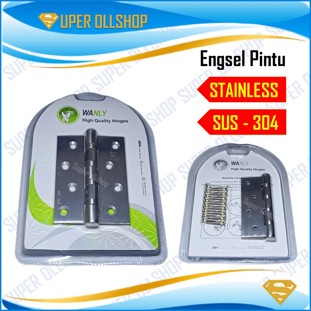Engsel Pintu Tebal 4 Inch Stainless SUS 304 / Engsel Pintu Jendela TEBAL / Stenlis Tebal Per Pasang Blister Murah
