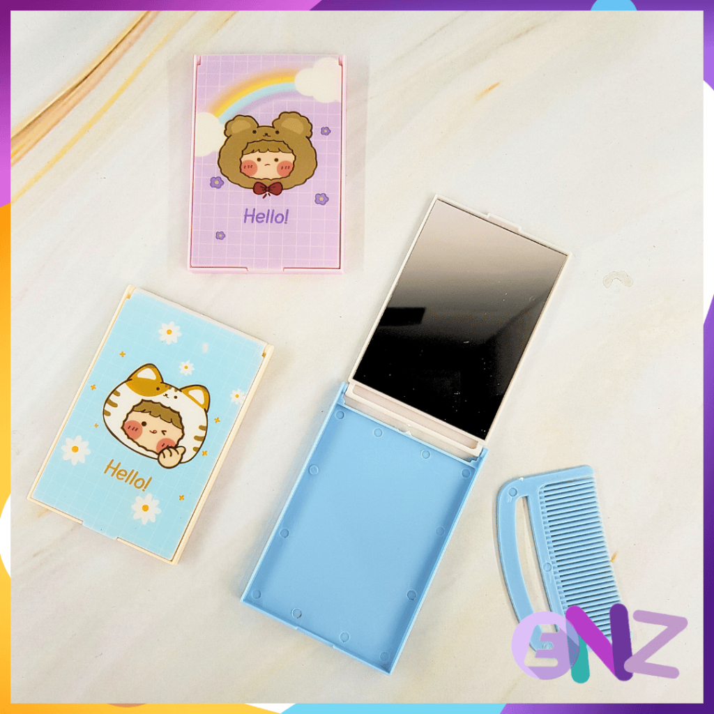 ENZ ® CERMIN MAKE UP + SISIR RAMBUT WANITA KARAKTER GAMBAR BT21 B T S BANG TAN KPOP MERCHANDISE KACA SISIR KARAKTER BT21 CERMIN LIPAT MINI / CERMIN SISIR LIPAT / Kaca Cermin Karakter BTS 1224