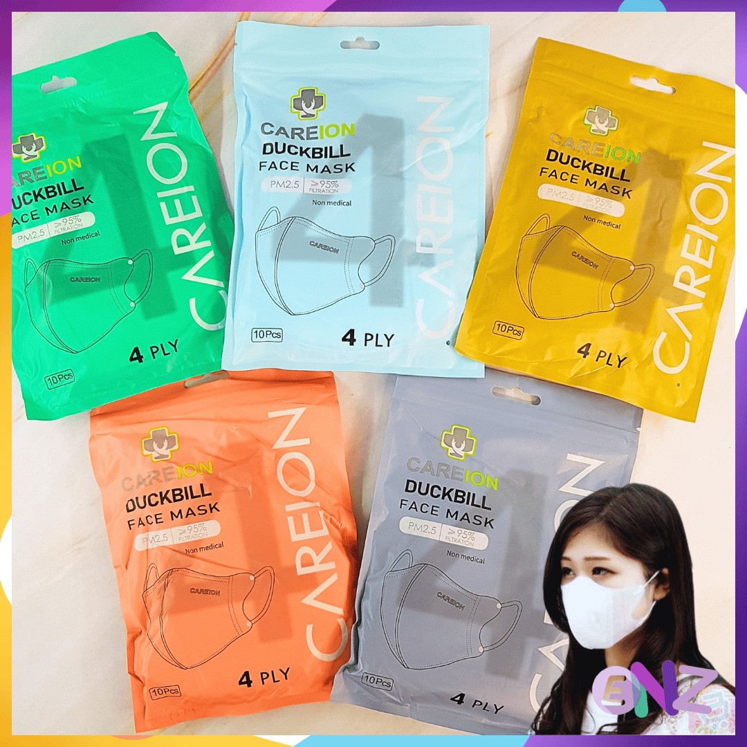 Detail ENZ ® Masker Duckbill CAREION 4Ply Putih Hitam Warna Duckbill 4 Ply isi 10pcs Earloop Mask Kemenkes 1060