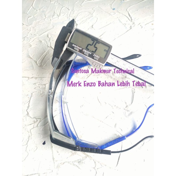 ENZO Safety Google Kacamata Safety Kacamata Safety adalah kacamata pelindung yang sangat cocok untuk dipakai oleh Anda yang bekerja di lapangan dan workshop maupun di laboratorium. BAHAN LEBIH TEBAL DIBANDING MERK LAIN PERBANDINGAN KETEBALAN BOLE CEK FOTO DI SLIDE KE 2 DAN KE 3