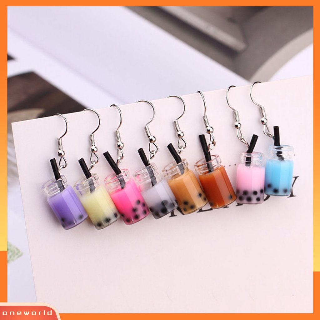 Detail [EONE] 1pasang Anting Kait Lucu Imut Gaya Sederhana Hypoallergenic Hadiah Kaca Teh Susu Liontin Wanita Menjuntai Anting Perhiasan Fashion