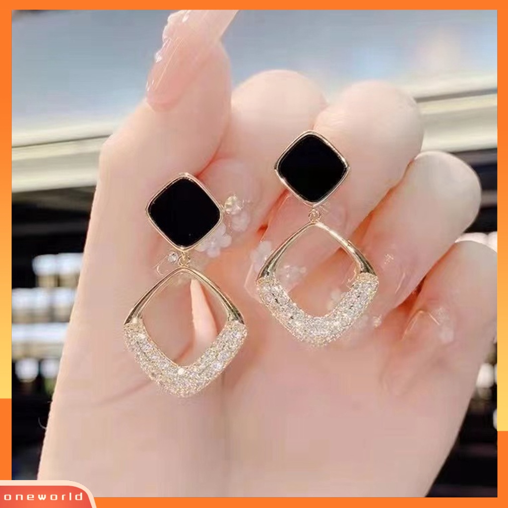 [EONE] 1pasang Drop Anting-Anting Geometris Berongga Keluar Mengkilap Berlian Imitasi Bertatahkan Berkilau Berdandan Hadiah Ulang Tahun Wanita Belah Ketupat Liontin Anting Perhiasan Aksesori Fashion