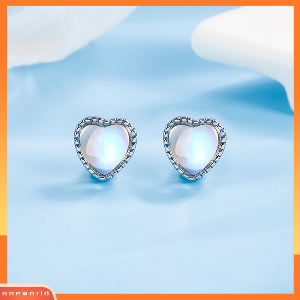 Detail [EONE] 1pasang Ear Studs Dainty Elegan Temperamen Mini High Gloss Cinta Hati Faux Moonstone Wanita Anting Perhiasan Aksesoris