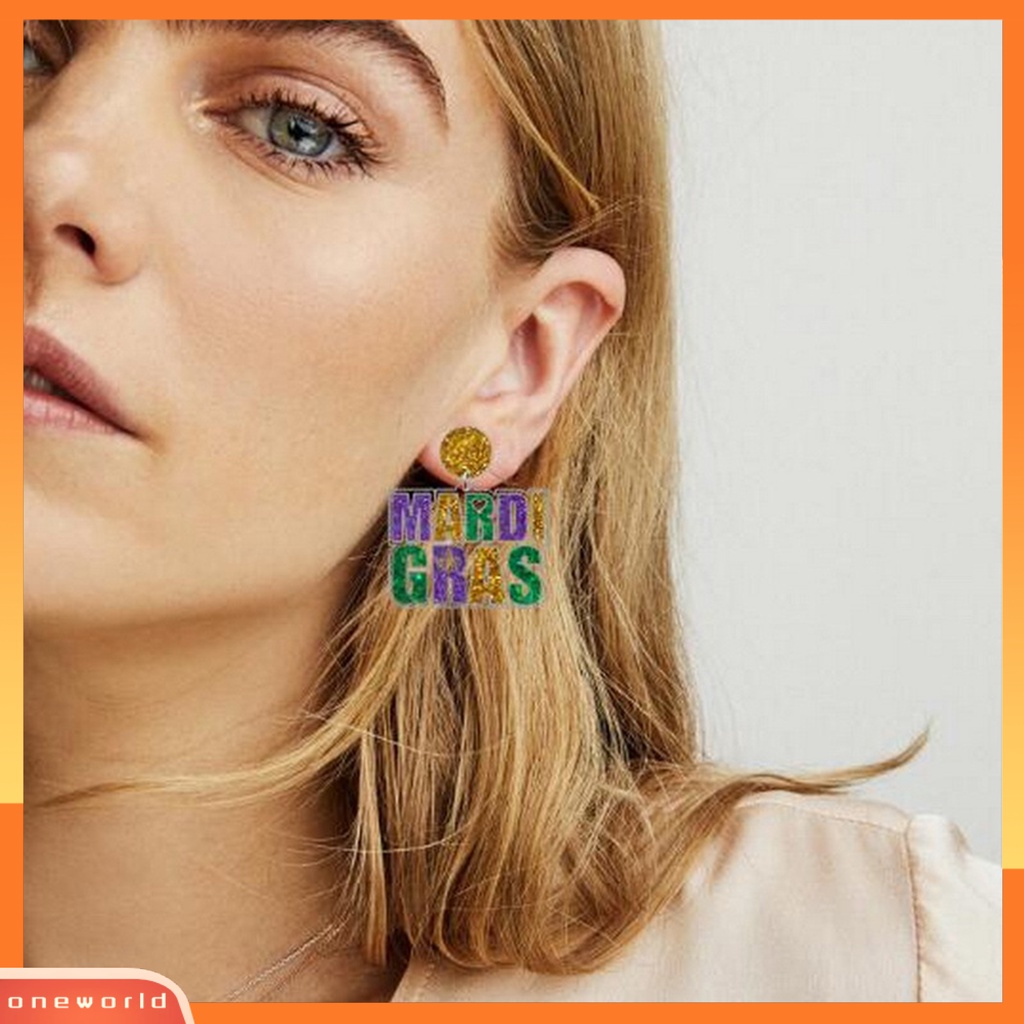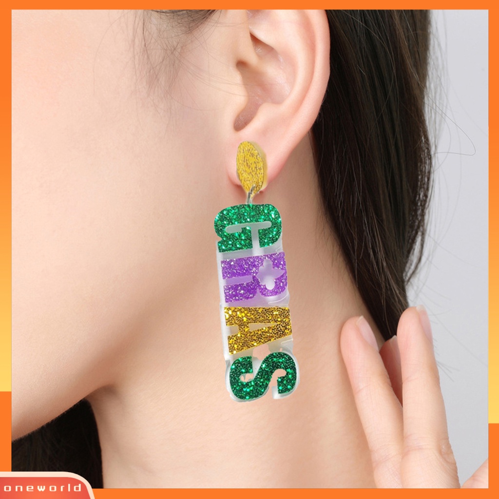 Detail [EONE] 1pasang Menjuntai Anting-Anting Pribadi Bubuk Kilau Alfabet Pesona Geometris Pengerjaan Halus Telinga Dekorasi Warna-Warni Berlebihan Surat Tiga Warna Anting Glitter