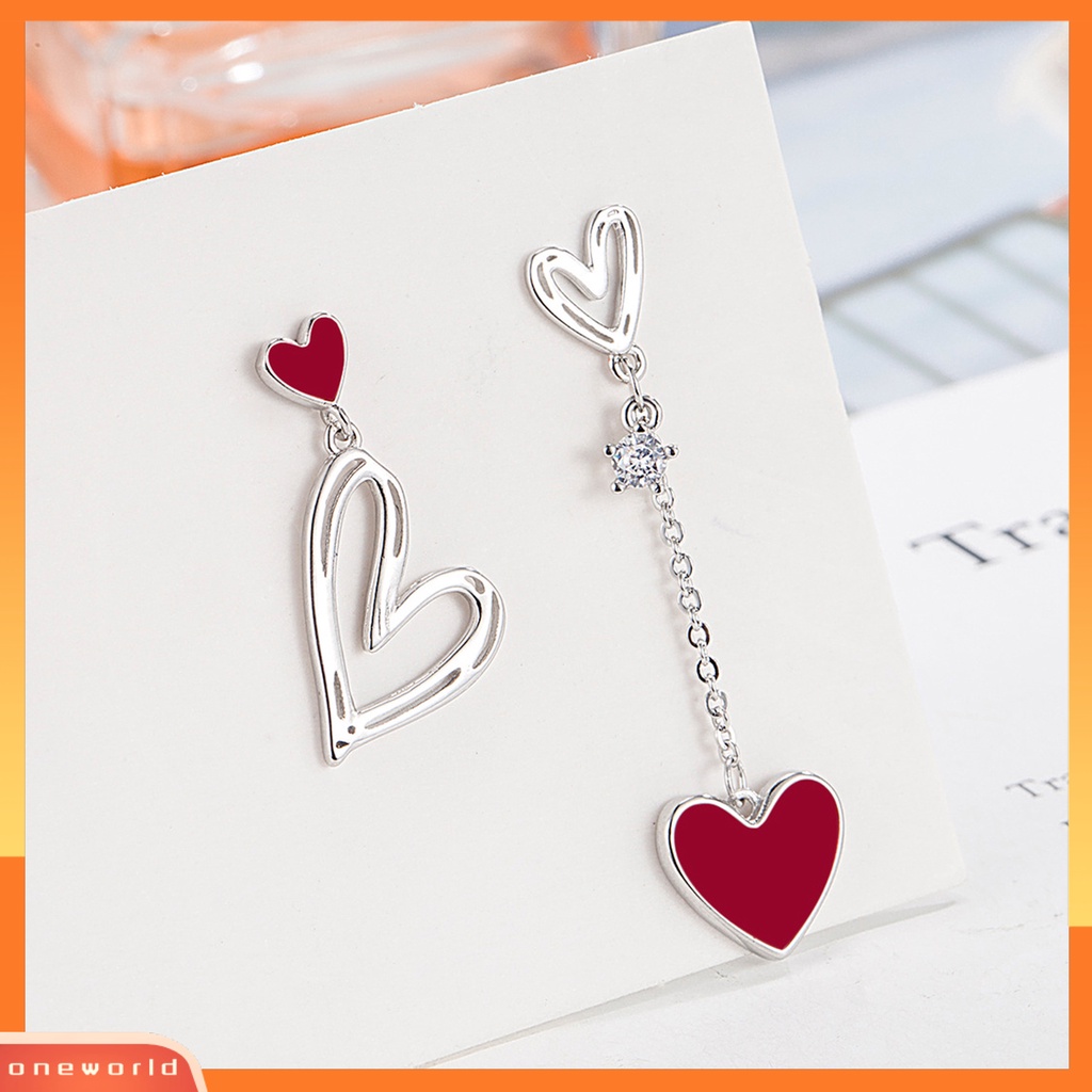 Detail [EONE] 1pasang Wanita Drop Earrings Asimetris Berongga Keluar Jantung Liontin Anting Pakaian Sehari-Hari