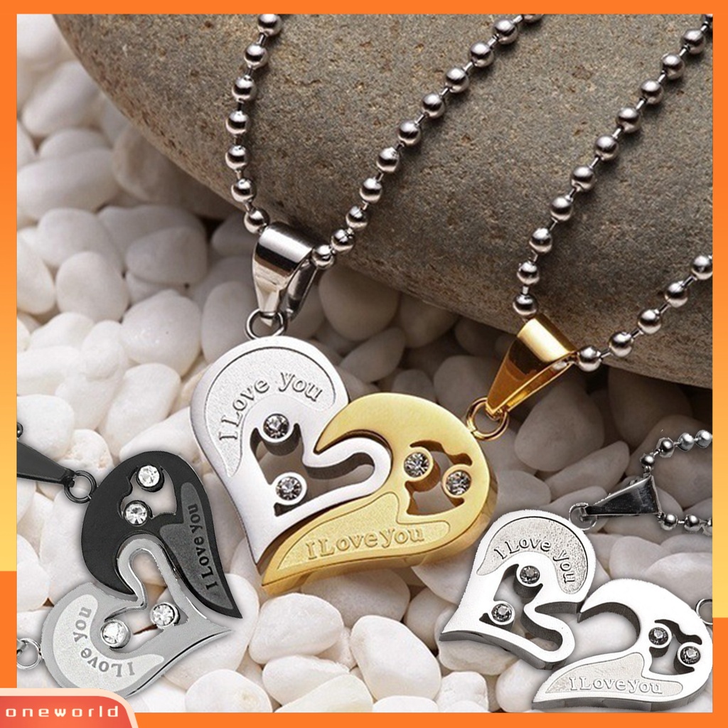 Detail [EONE] 2 Pcs Pasangan Kalung Berlian Imitasi Mengkilap Tergabung Berkilau Geometris Memorial Hadiah Klasik Kekasih Hati Liontin Kalung Aksesoris Perhiasan Untuk Anniversary