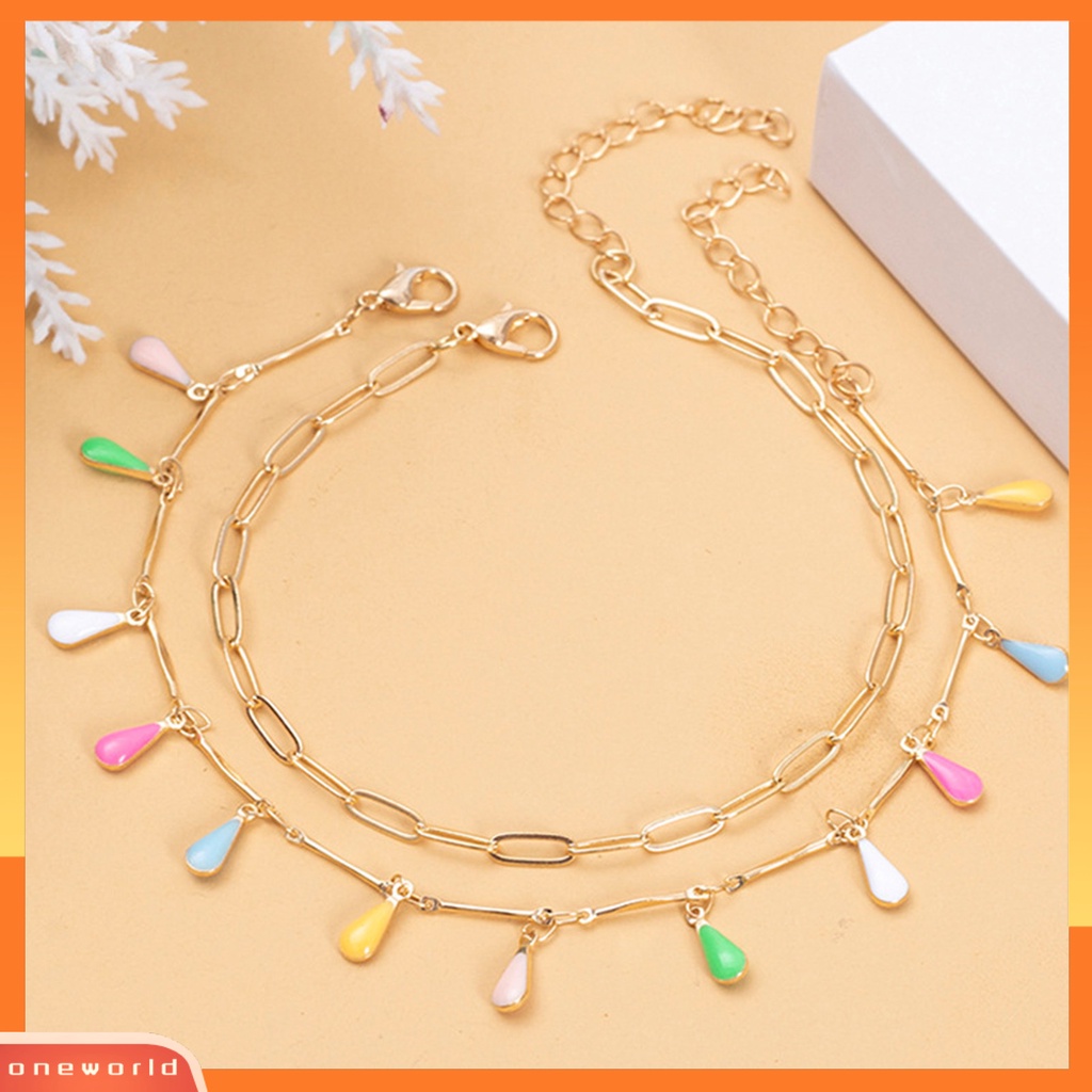Aksesoris Fashion > Kalung > Kalung Lainnya > [EONE] 2pcs/set Wanita Kalung Warna-Warni Warna Kaya Mudah Cocok Tahan Lama Portabel Klip Lobster Hias Bentuk Tetesan Air Berongga Keluar Wanita Liontin Hadiah