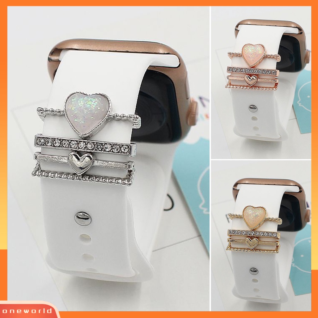 Detail [EONE] 4 Pcs Watch Band Dekorasi Rings Logam Pesona Berlian Imitasi Mengkilap Hias Berkilau Geometris Hadiah Valentine Bentuk Hati Silikon Watch Strap Bracelets Liontin Deskripsi: Deskripsi: Deskripsi: