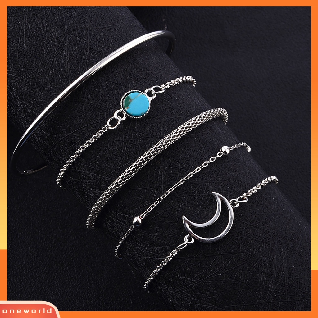 Detail [EONE] 5pcs/set Wanita Gelang Set Multi Bentuk Bulan Rantai Alloy Lady Bangle Set Untuk Hadiah