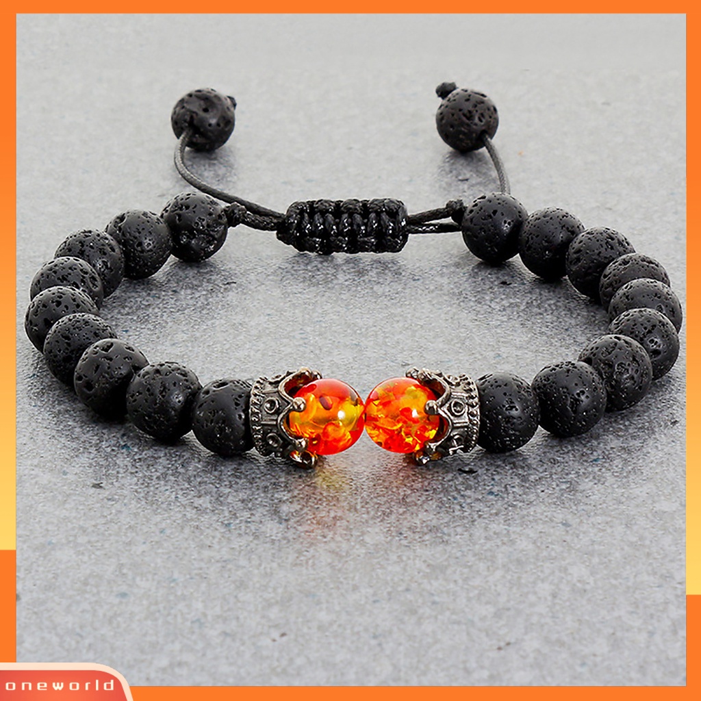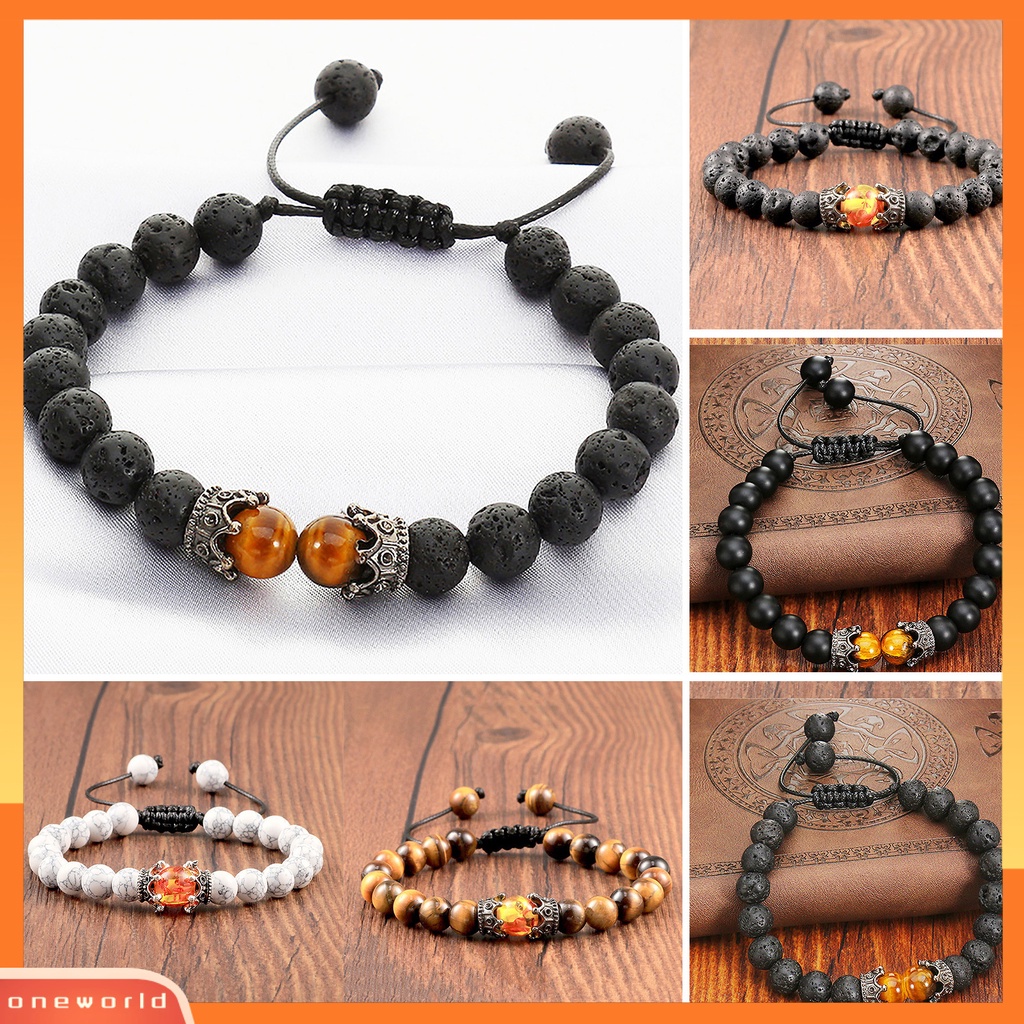 Detail [EONE] Adjustable Permukaan Halus Pria Gelang Batu Mahkota Pesona Braided Wristband Perhiasan Aksesori