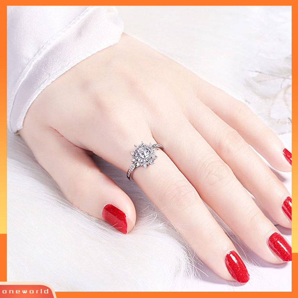 [EONE] Cincin Kawin Terbuka Dapat Disesuaikan Mungil Mewah Warna Perak Berlian Imitasi Tertanam Kepingan Salju Wanita Cincin Pertunangan Fashion Perhiasan