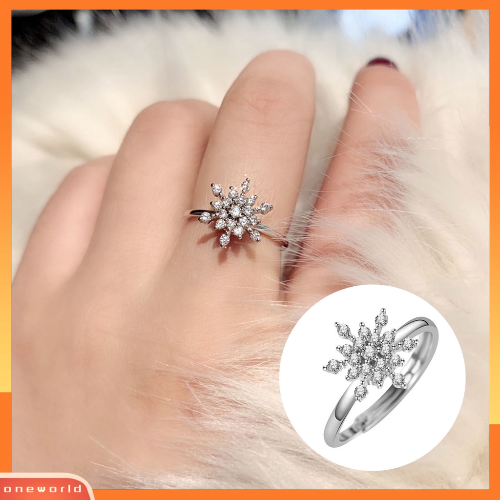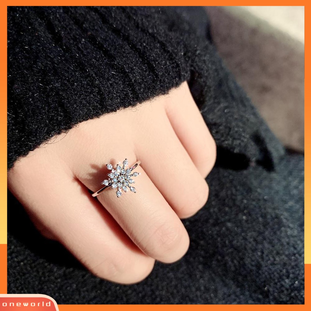 [EONE] Finger Ring Plating Shining Snowflake Decor Cubic Zirconia Nyaman Dipakai Niche Hias Kepribadian Kelas Tinggi Terbuka Cincin Pakaian Sehari-Hari