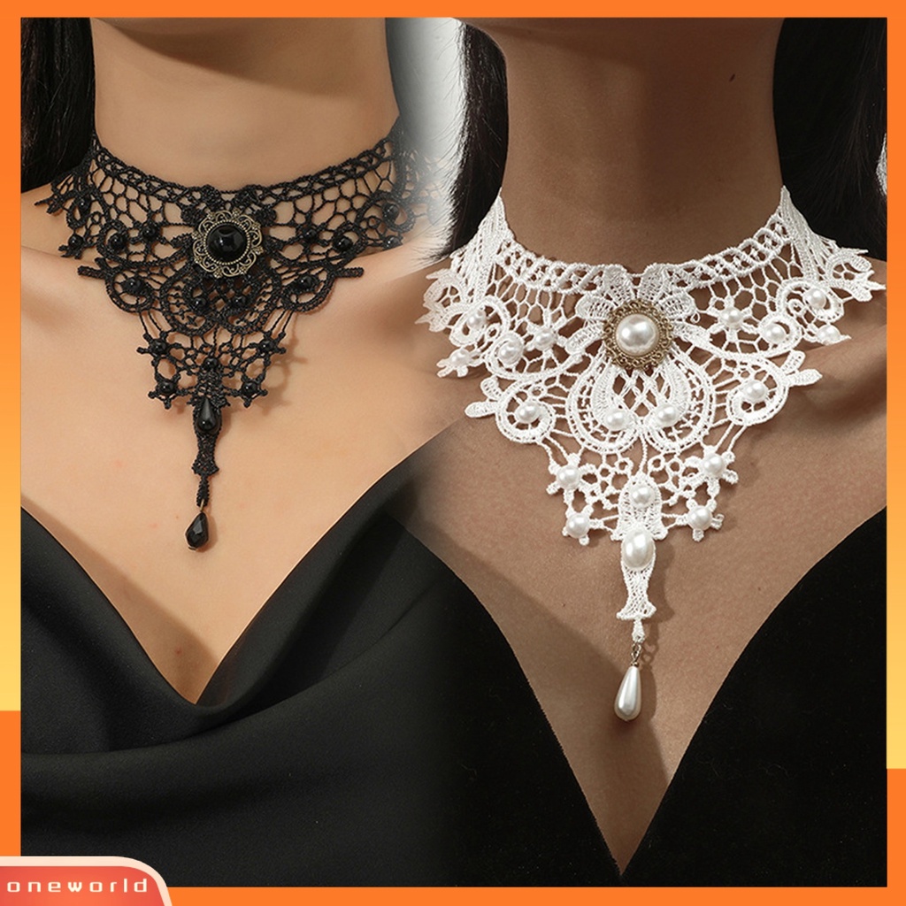 [EONE] Liontin Kalung Rantai Yang Dapat Disesuaikan Halus Semua Pertandingan Retro Pakaian Sehari-Hari Renda Crochet Gelap Gaya Choker Necklace Jewelry Supply