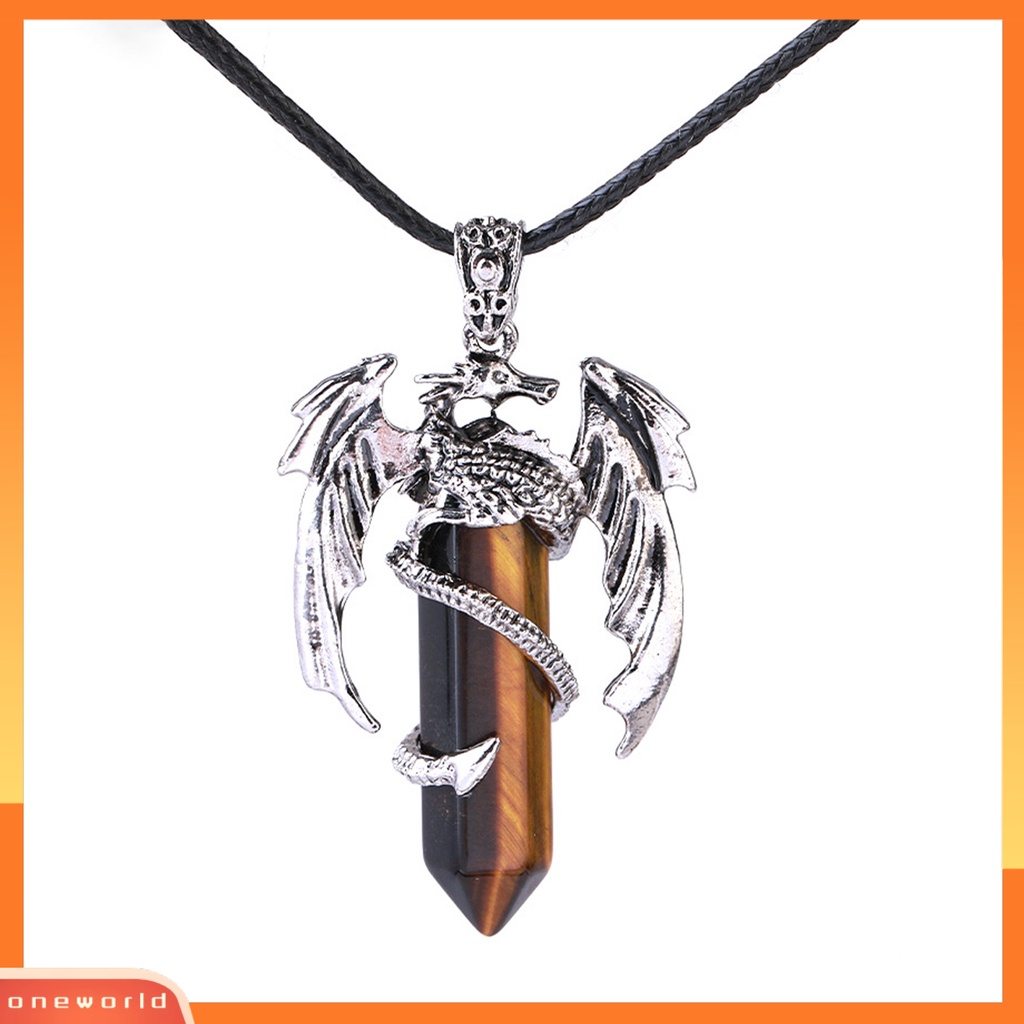 [EONE] Liontin Kalung Vintage Hexagonal Faux Kristal Pilar Batu Alam Kepribadian Tali Lilin Hias Hadiah Pria Wanita Hewan Naga Pesona Kalung Perhiasan Untuk Pakaian Sehari-Hari